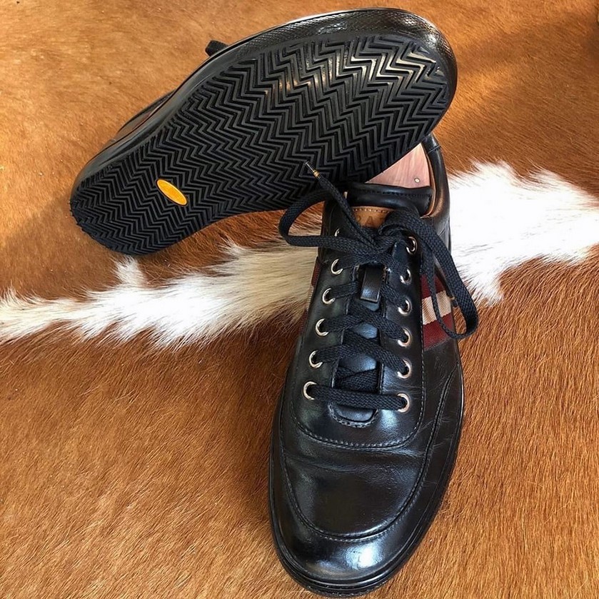 Diese Sneaker von Bally wurden mit einer profilierten Sportsohle versehen, welche übrigens auch gut zu Sneaker von Adidas, Puma, Nike etc. passt. Anschließend wurde das Obermaterial gereinigt und poliert.